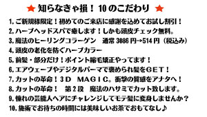 | 営業時間 | 10:00~19:00 (カット最終受付18:00) |